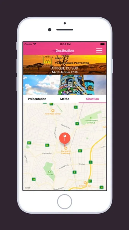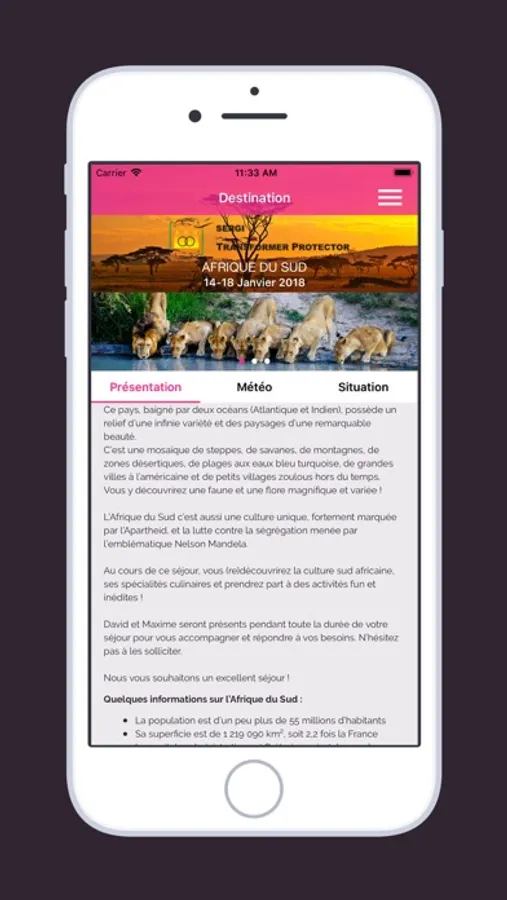 • Découvrez votre destination et les caractéristiques de cette dernière (coordonnées GPS).