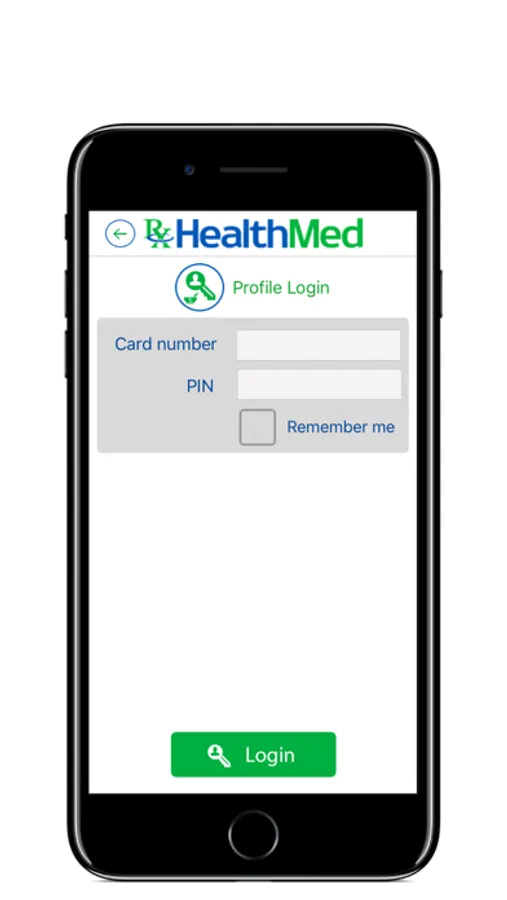 Profile Login: Login using a card number and PIN issued to you by your pharmacy. See your current prescription profile on your device. Place order by simply click the check-box next to your prescription.