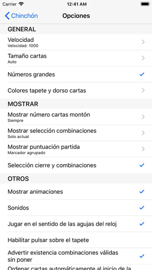 - Distintos modos de juego: 1 o 2 barajas, descubierto/cubierto, comodines, reenganchar, varios adversarios