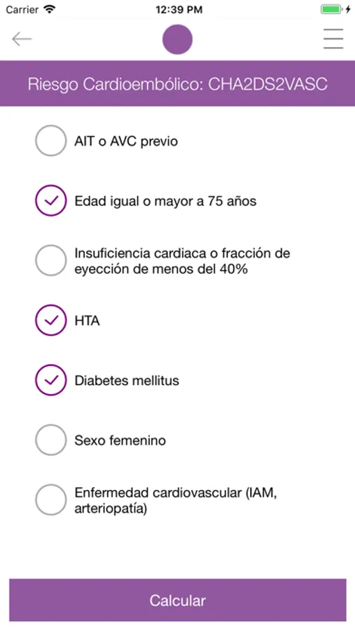 Escalas de Glasgow y de Four, EGSYS, OESIL, Canadian Syncope Risk Score, Escala de Boston de riesgo de síncope, Escala de Geleijnse para el diagnóstico clínico del dolor torácico de origen isquémico, Escala de la disnea en la insuficiencia cardiaca de la NYHA, Riesgo de ictus tras un AIT: ABCD2, Escala APACHE II, calculadora para la conversión de microgramos/Kgrs/minuto a infusión ml/h, SOFA y Q-SOFA, Shock hemorrágico: Assessment of Blood Consumption (ABC) score, Trauma Score y Revised Trauma Score, Escala de la disnea en la insuficiencia cardiaca de la NYHA, TIMI Score para SCASEST, TIMI Score en SCACEST, CRUSADE, escala de riesgo de sangrado en SCASEST, Escala de Grace (mortalidad SCA), Riesgo Cardioembólico: CHA2DS2VASC, Escala de riesgo hemorrágico HASBLED, Escala de Wells: probabilidad clínica de TVP, Cálculo de Riesgo de TVP e indicación de profilaxis, Escala de Padua para la evaluación de ETV en pacientes hospitalizados, Cuestionario de claudicación intermitente de Edimburgo, Escala de gravedad de BODE, BODEx, Escala de disnea modificada mMRC...