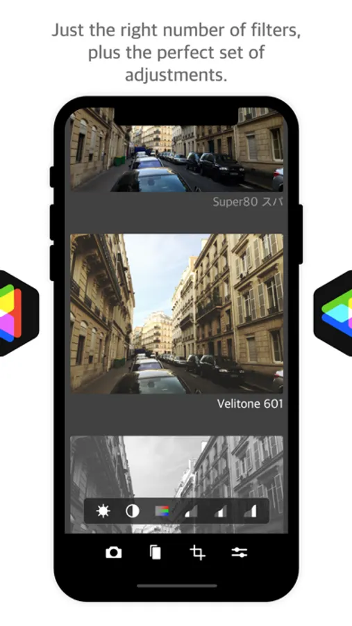 We’ve perfected the number and variety of filters in CameraBag over 9 years of making photo apps - no throw-away filters that you’ll never use. Each one has been lovingly crafted, and uses ultra-high-fidelity 96-bit processing.