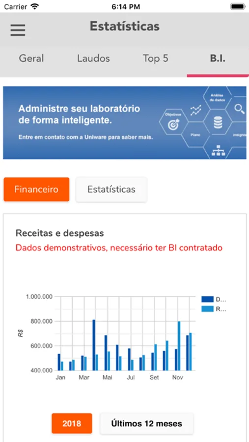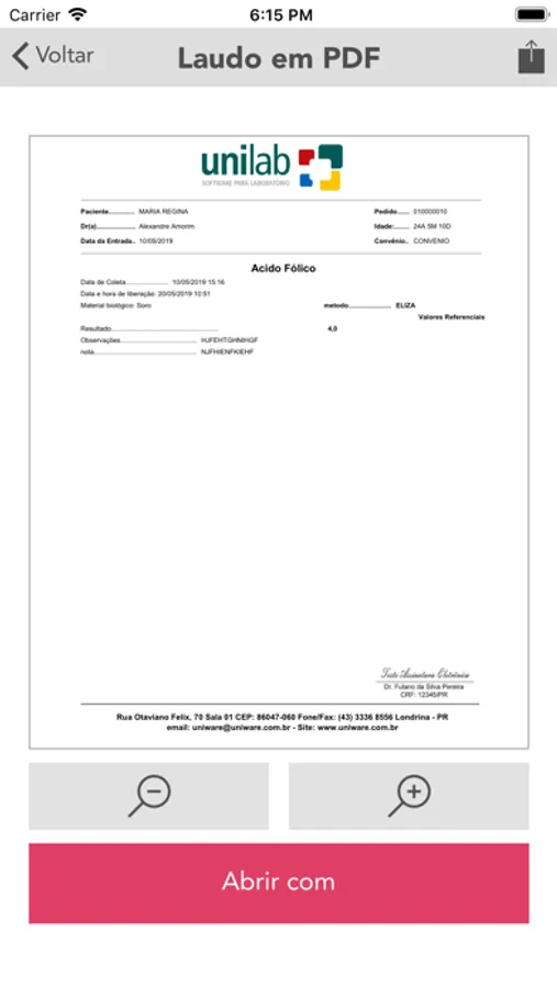 Este é um aplicativo para pacientes de laboratórios que utilizam o sistema Unilab. Ao baixá-lo você terá acesso a um formulário que o identificará como paciente ou administrador de laboratórios. Como paciente, você terá acesso aos seus laudos e poderá armazenar seus resultados no dispositivo (tablet ou smartphone). Como administrador, você terá acesso a diversas estatísticas, uma central de mensagens com a Uniware e acesso rápido a todos os novos recursos que a Uniware preparou para o seu laboratório.