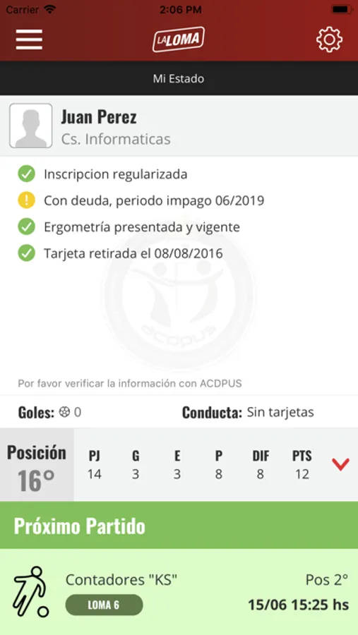 Aplicación con toda la información de la Asociación Cultural y Deportiva de Profesionales Universitarios de Salta, La Loma. Con un importante predio que cuenta 8 canchas de fútbol, en La Loma se desarrollan todos los años torneos de fútbol para profesionales universitarios.