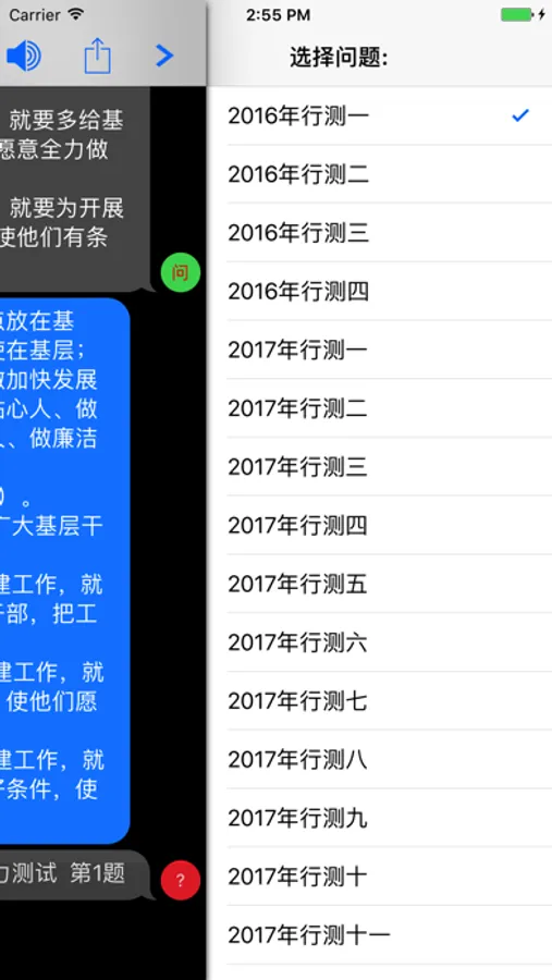 2. 右侧滑出菜单,选择问题开始。