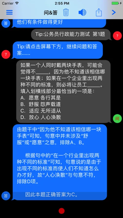 3. 点击屏幕下部,即可一问一答。
