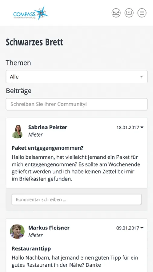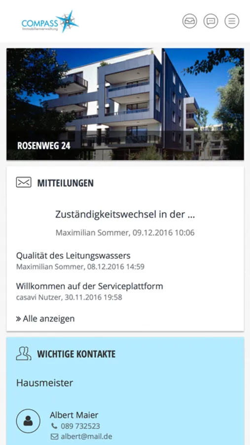 Willkommen im digitalen Begleiter für die Nutzung der von der Compass Immobilien GmbH verwalteten Liegenschaften.