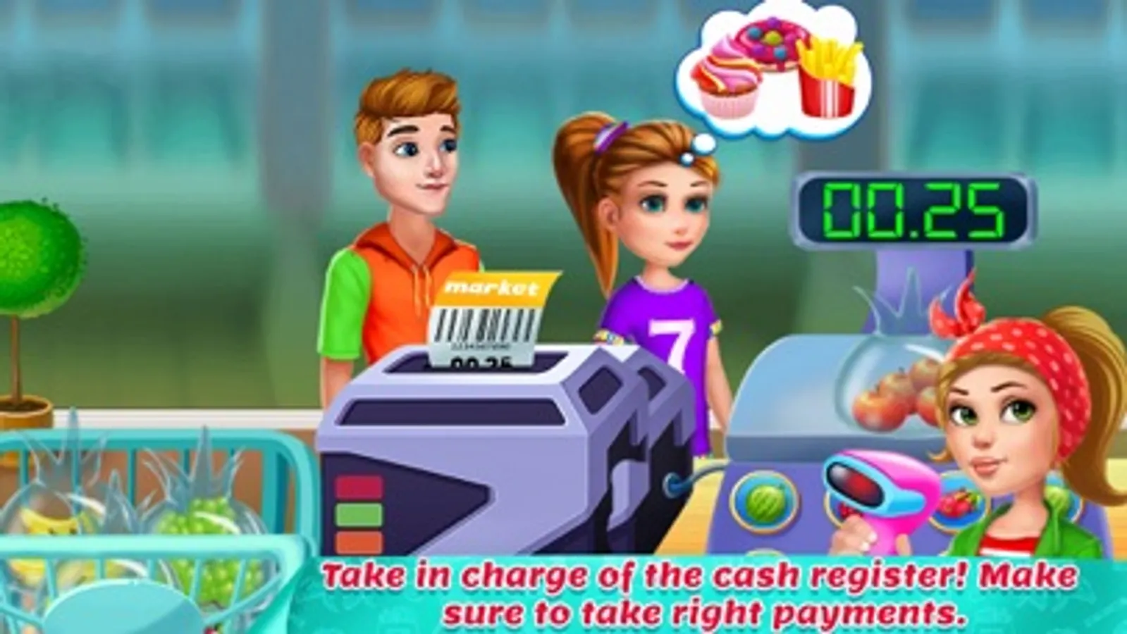 Be a real manager and run the supermarket cash register. Make sure to give customer the right bills and! Serve them & make them happy to get rewards. Collect the total amount, followed by scanning the item. Punch in the prices for the items, and swipe to complete the transaction!
