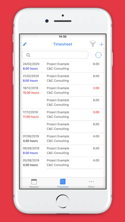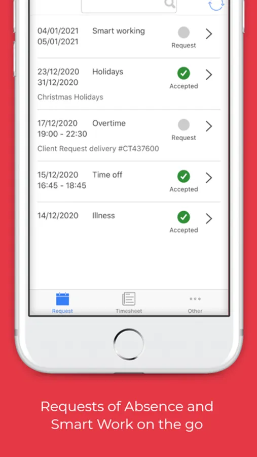eProject integrates more features in one and only app. In addition to the recording of working hours on projects you have also the possibility to send holidays, time off and smart working request and other full day or hour absences. This allows the company to have their employees precise situation always under control and in real time.