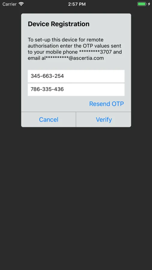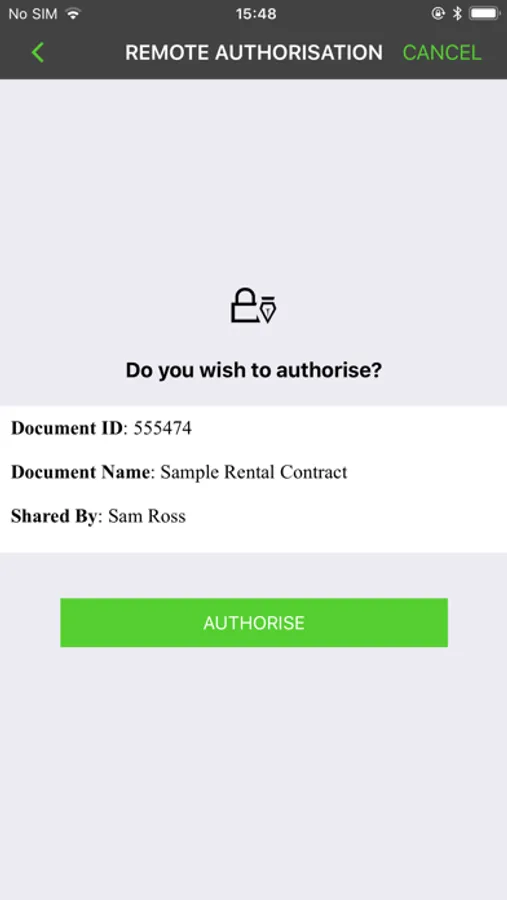 • Authenticate using Touch ID or device PIN to access authorisation key