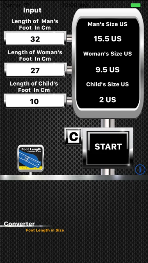 Obtained in cm in the screen provided for this purpose. Then you press START and the size appears