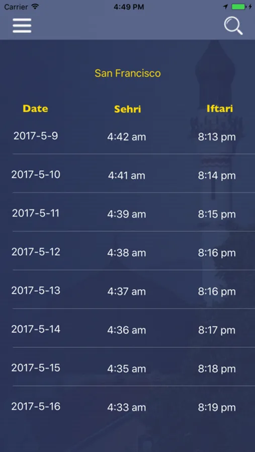 - With Praying Time Table tab you can get all praying time information for a month of period.