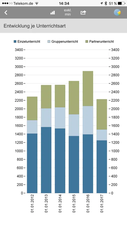 In der Musikschule kann direkt in iMikel definiert werden, welche Mitarbeiter als iMikelGo-Benutzer Ihrer Musikschule die gewünschten Informationen sehen sollen. iMikelGo zeigt die Bereiche Unterricht, Team (Mitarbeiter), Inventar und Statistiken.