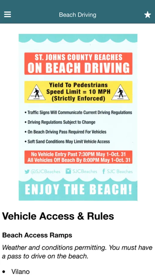Reach the Beach with the SJC Beaches app! St. John County beaches are some of the most beautiful in the world. This app provides convenient information that will help residents and visitors to enjoy their time on the sand including: