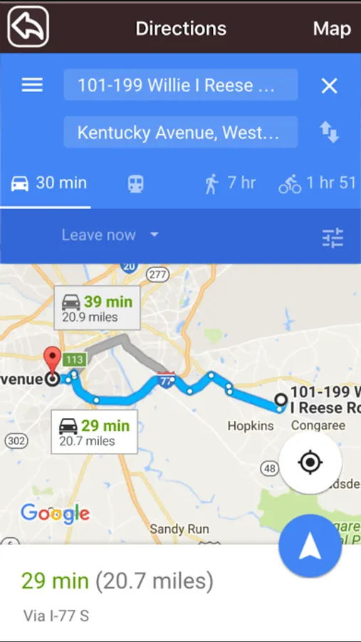 √ Get directions from current location to Park location.