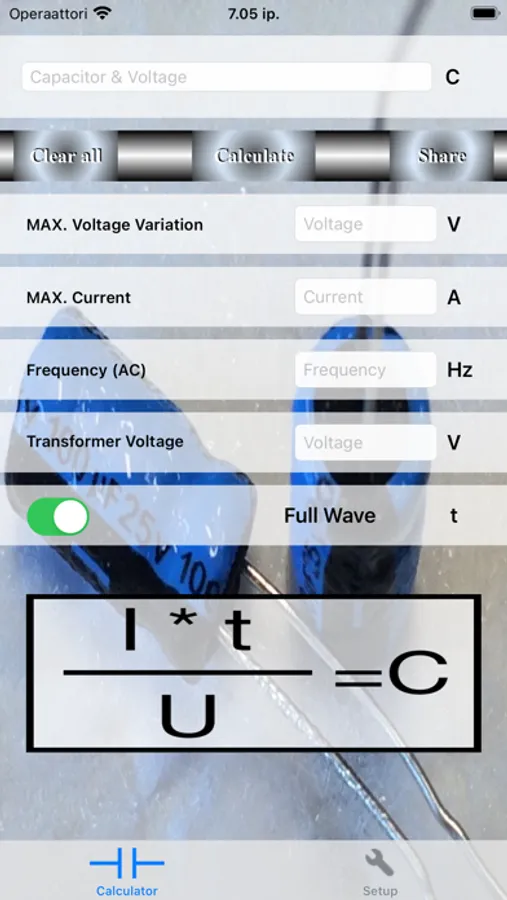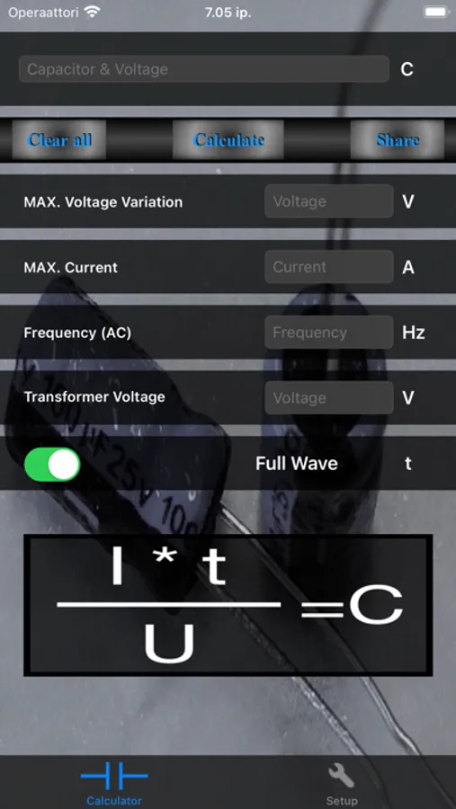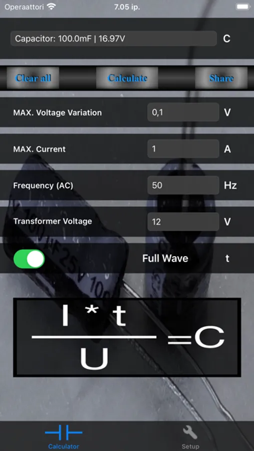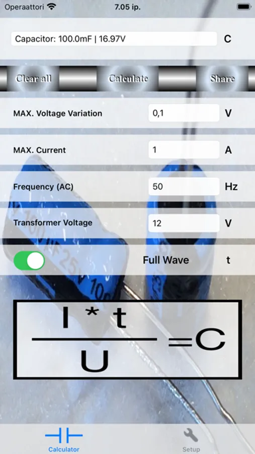 With this App you can calculate a value for capacitor in your power source output circuit.