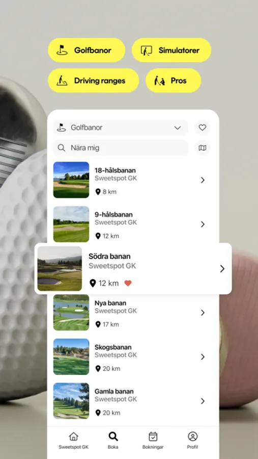 Sweetspot makes it easy for you as a golfer to find and book times for all types of golf facilities. With us, you can book golf, simulators, Top Tracer driving ranges, mini-golf, disc golf, trailer parking, and other services available at your golf facility.