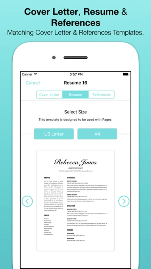 Resume Templates for Pages is an amazing add-on for Apple's Pages app. Each Resume template is paired with a Cover Letter and References template that share the same design for a total of 210 templates.