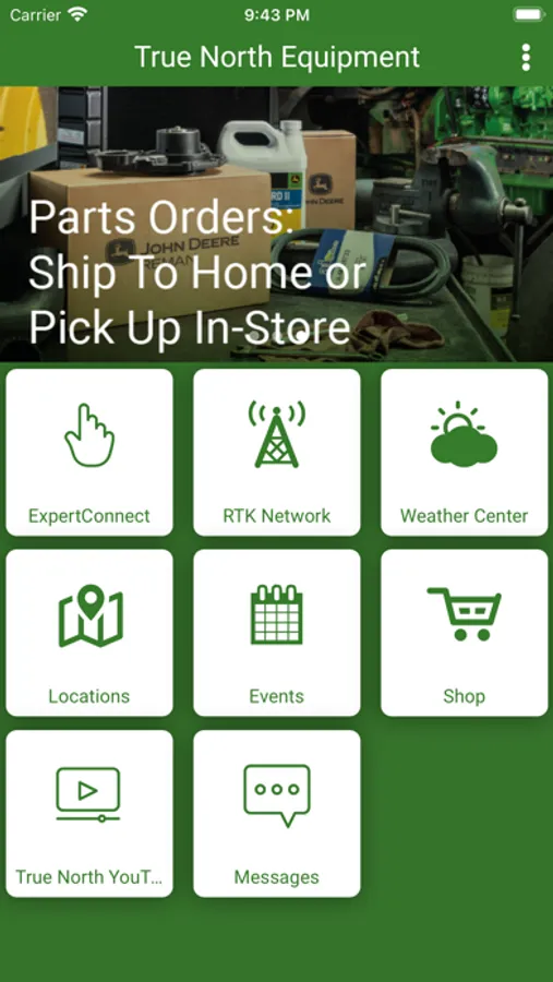 Your connection to True North Equipment's Precision Ag RTK network, education resources, relevant weather, & the Expert Connect center. In addition, the True North Equipment app is one tool for ordering parts, scheduling services, accessing technical support, updating your accounts, and more!