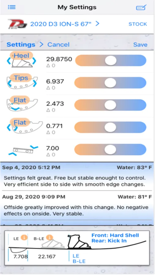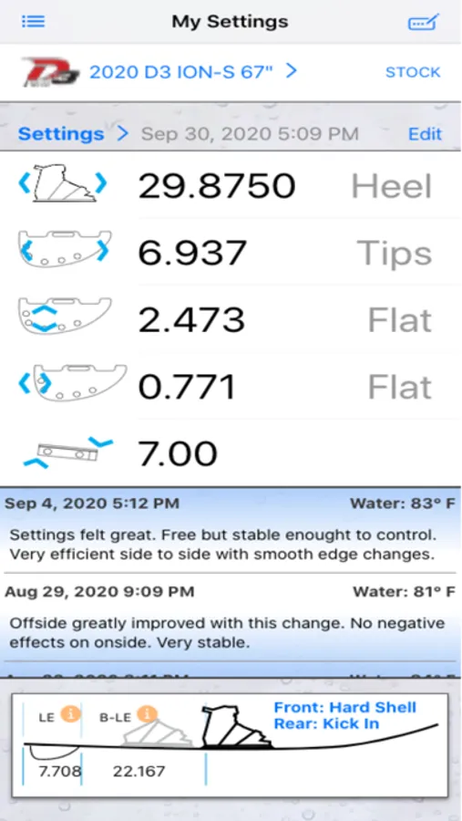 fin DB is an App to lookup stock water ski settings and save your own custom settings for any ski you choose. High performance water skis have very specific settings and manufacturers publish these settings as a starting point for users.