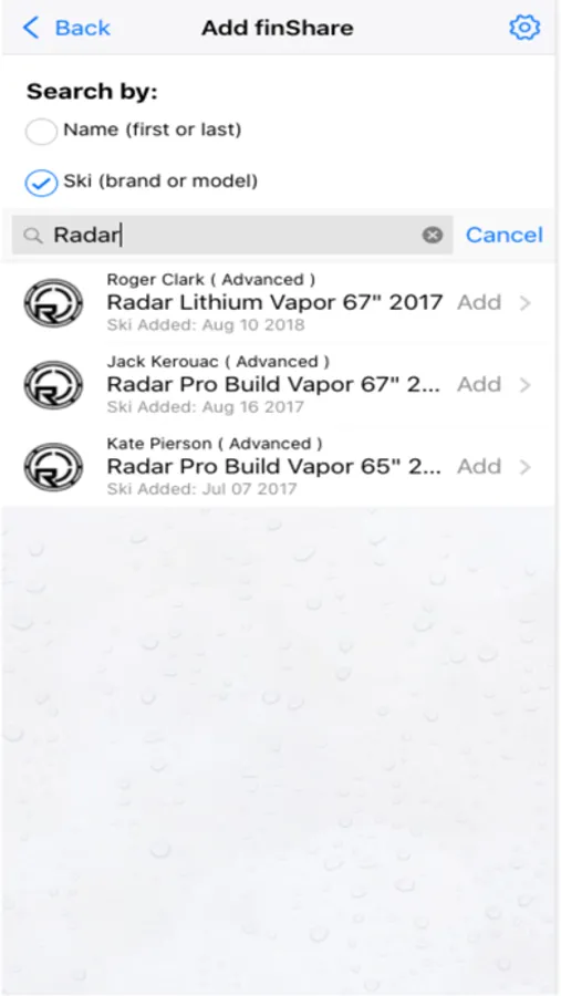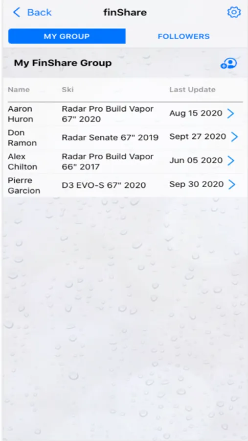 You can share your settings with other users with the new finShare feature. If you have the same model ski, you can directly compare your settings to theirs.