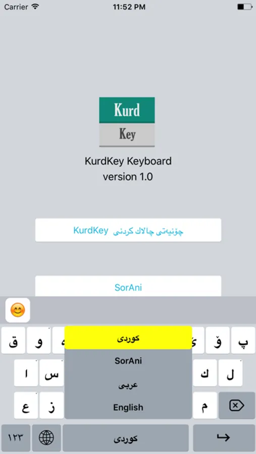 کیبۆردی کوردكی ئەم کیبۆردە لە ئێستادا ٣ زمان لە خۆدەگرێت (کوردی- عربی -ئینگلیزی ) وە emoji و كیبۆردی SorAni لەخۆدەگرێت .