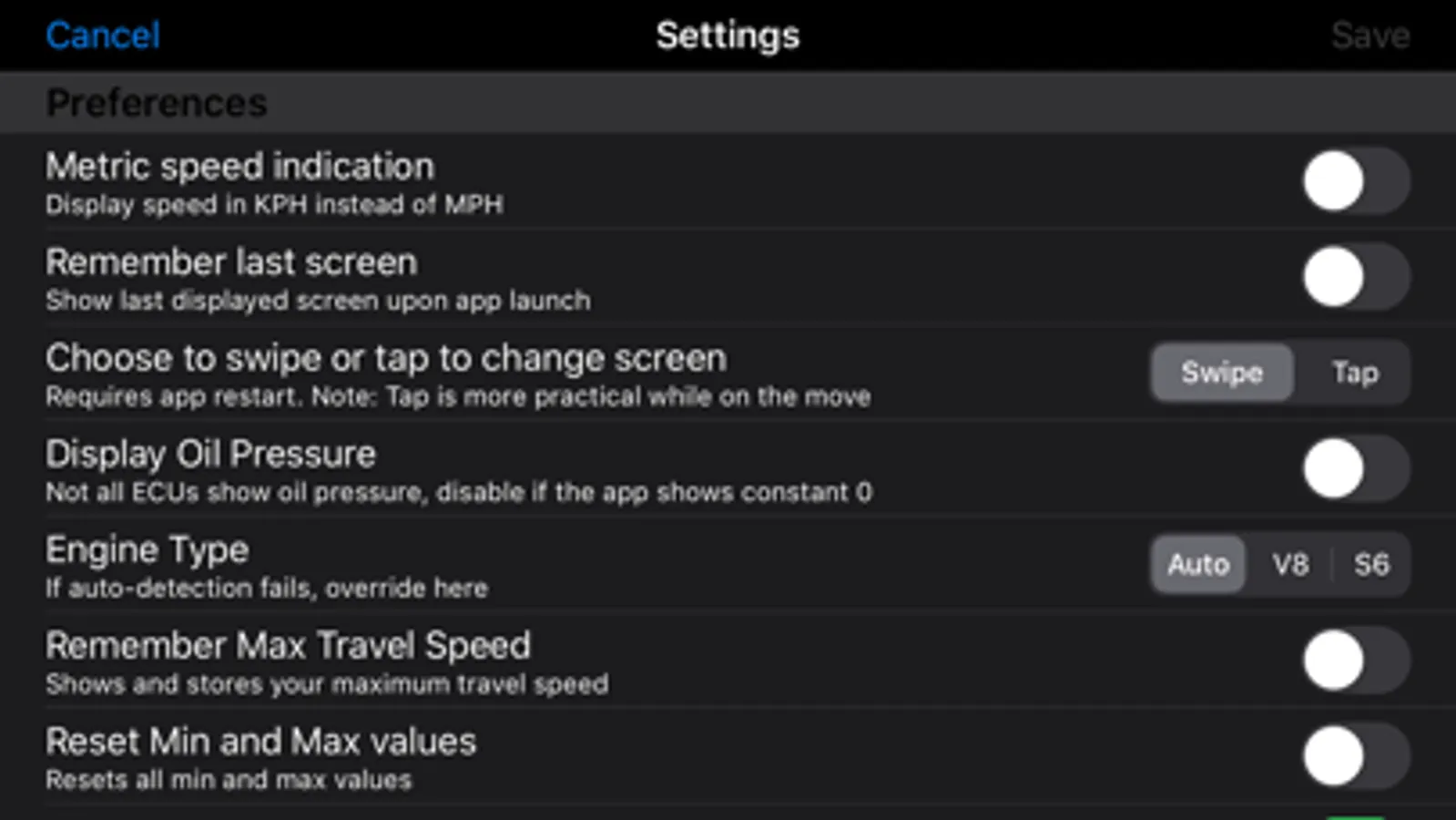 In addition to displaying the data, the application enables the user to reset the ECU's logged faults, service interval, adaptives and throttle (S6) and can be used to log live data for export via email.