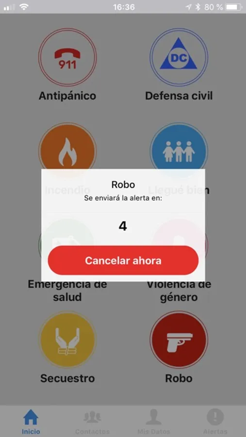 Dependiendo de cómo lo configure cada cliente. Los botones de emergencias Antipánico, Defensa Civil, Bomberos y Salud también te pondrán en comunicación con los números designados. El botón de Robo dependerá de la configuración de cada cliente.