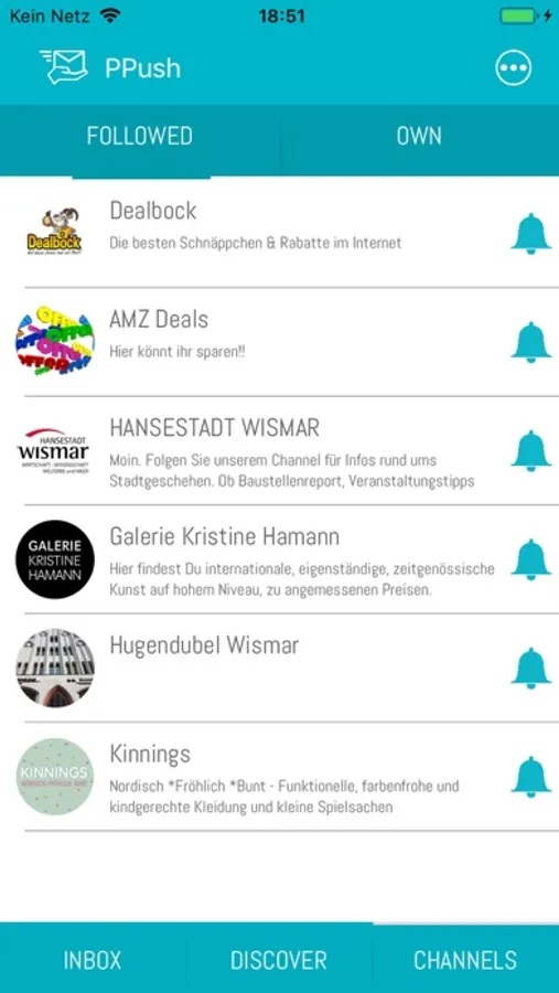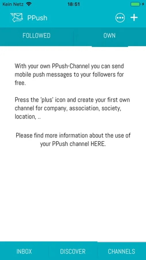 INBOX - NO NEWSFEED: We know that too many useless push notifications can be annoying. Therefore, you only get a notification of PPush if a channel followed by you sends a direct message.