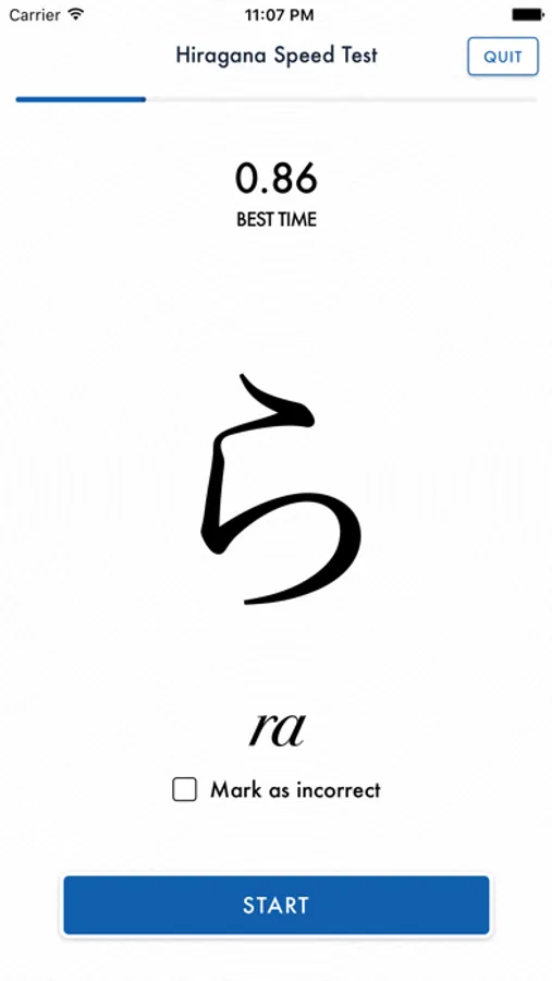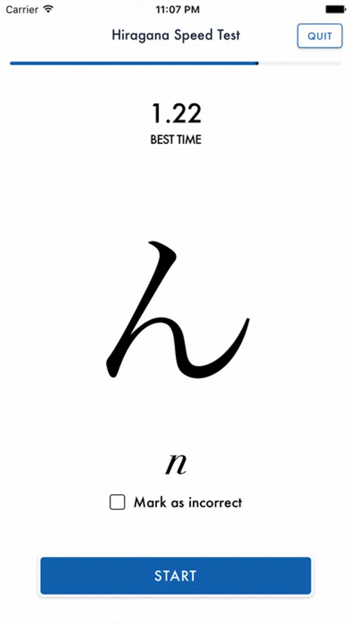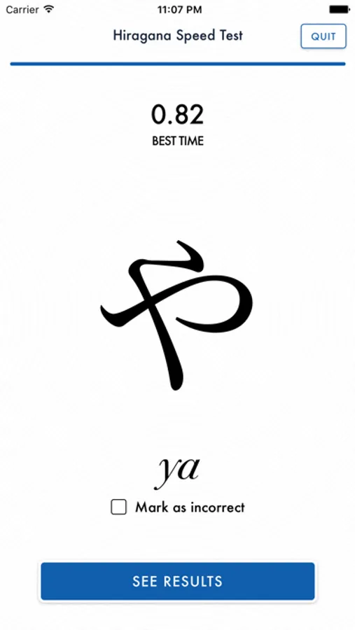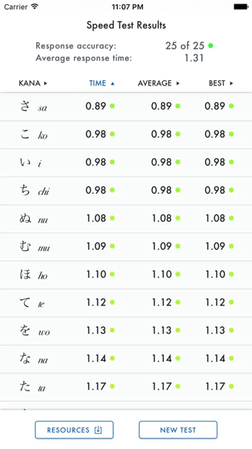 - Evaluate progress over time with recorded scoring, average and best times for each kana