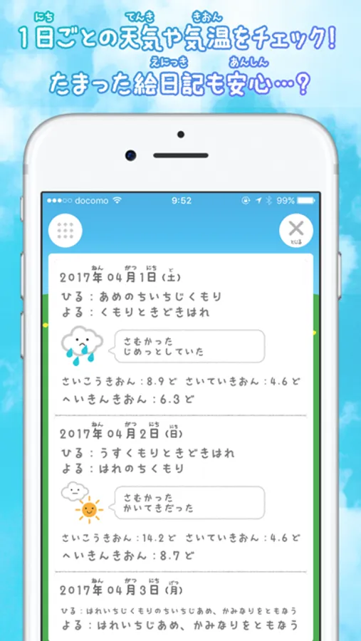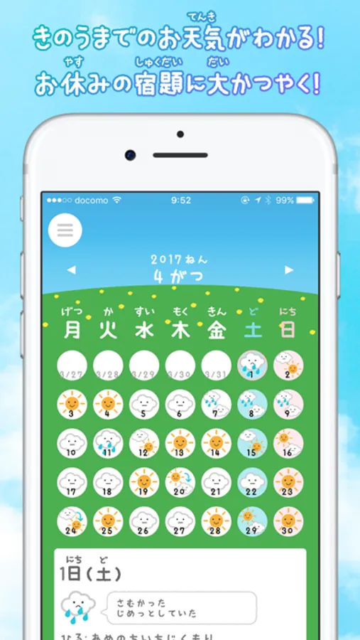 絵日記の宿題の為に過去の天気を知りたい、簡単に確認できるアプリがあれば便利なんだけど。
