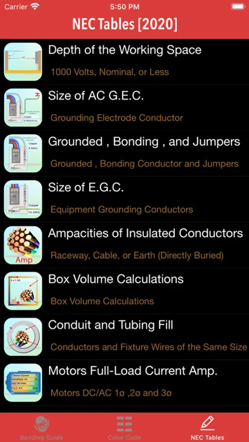 Adding many Tables of NEC 2020/2023 it is very helpfully , Faster Look up what you want useful and easily than another Apps