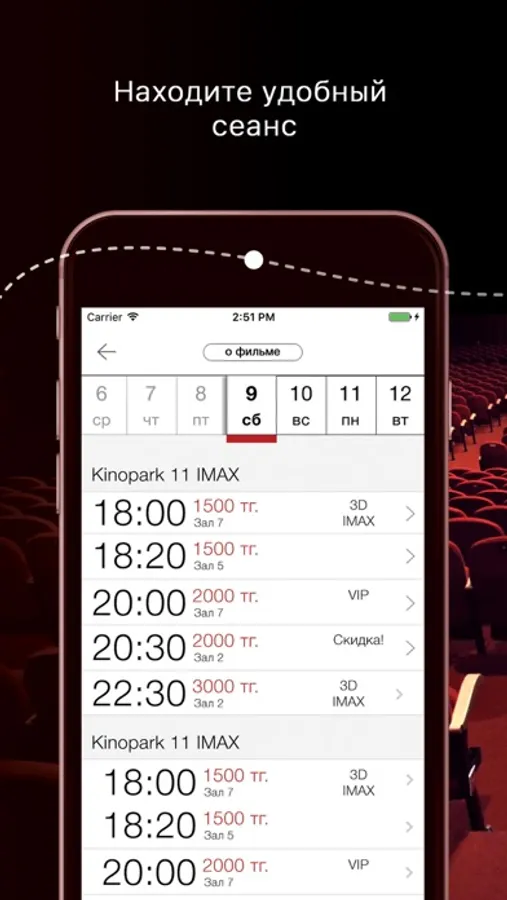 С помощью данного приложения можно узнать что идет в кинотеатрах сети Kinopark, просмотреть информацию о фильмах, выбрать удобный сеанс и купить билет.
