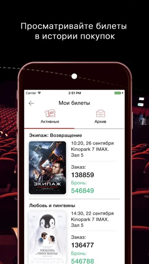 · Онлайн покупка билетов в кино.