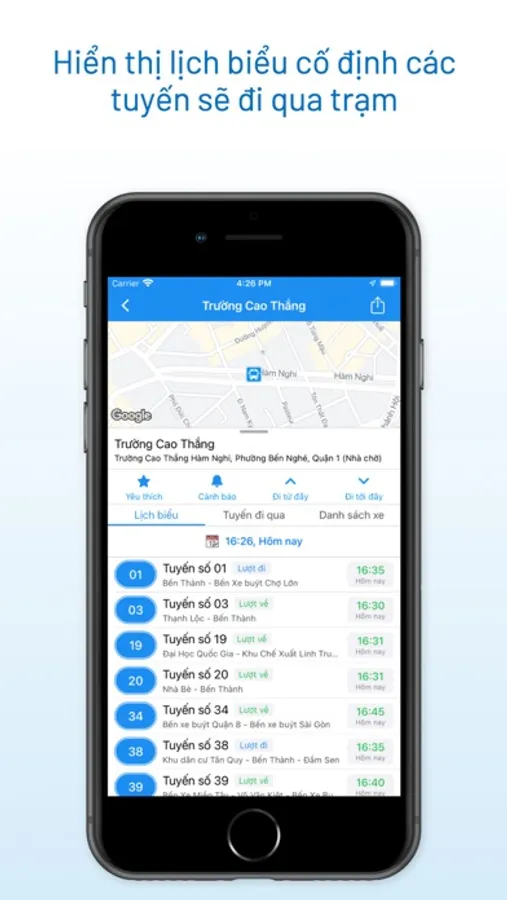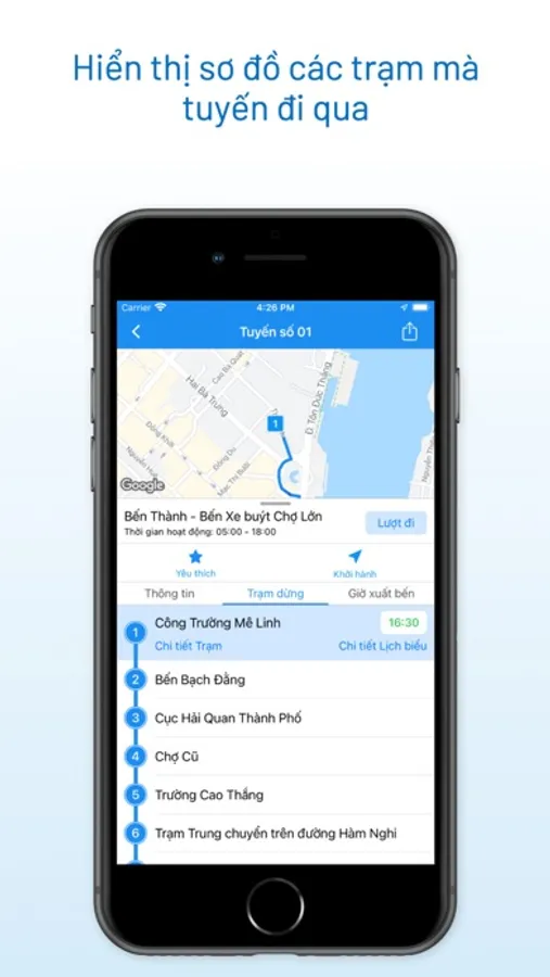- Hiển thị thông tin chi tiết, sơ đồ và giờ chạy của các tuyến, trạm xe buýt.