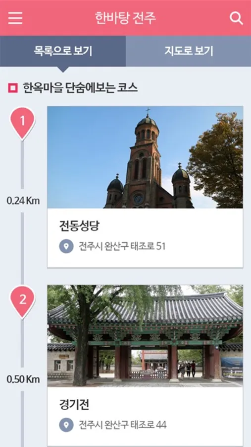 3. 전주 관광 추천코스별 경로안내 서비스 제공