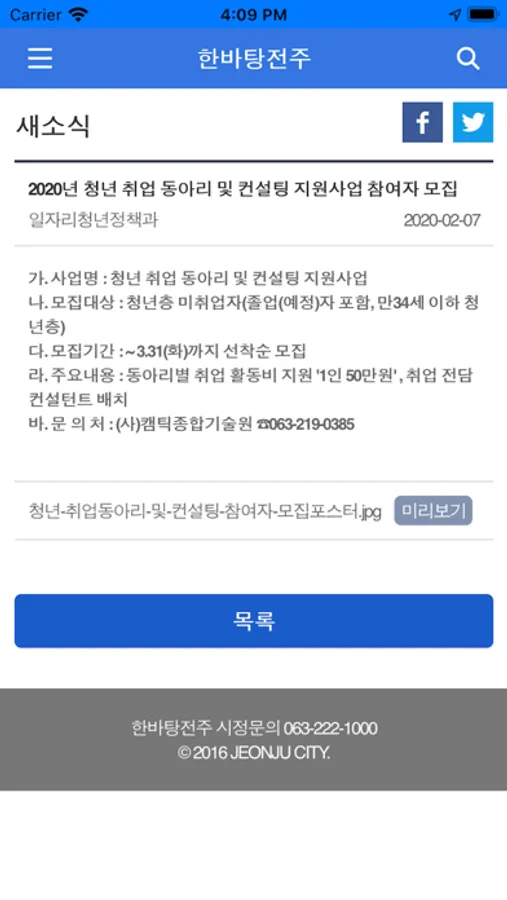 전주시 시정․행사․관광(전주관광, 한옥마을)을 언제 어디서나 모바일을 통해 다양한 정보를 쉽게 이용하는 전주시청 홍보APP입니다.
