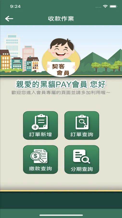 ◇收款作業:提供收款單建立、查詢、客戶繳款紀錄查詢、分期記錄查詢。