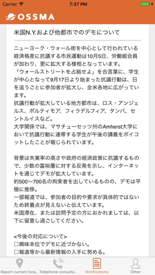 This app gives users access to Emergency Assistance Japan's OSSMA LOCATOR, a cloud-based system that helps ensure student safety during study abroad.