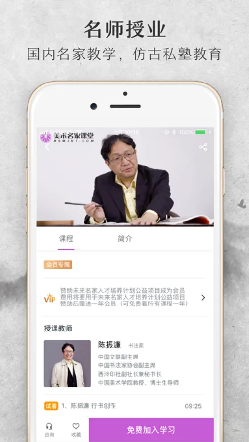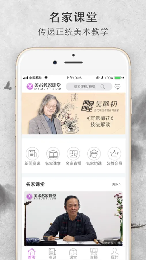 美术名家课堂是中国第一家提供美术远程视频教育的应用。应用主要为全国美术高考生、美术爱好者、提供在线的书法、山水、花鸟、人物、等各大名家教学视频。