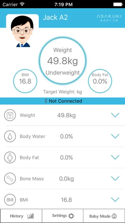 This application allows you to easily monitor essential health and fitness data for: Body Weight, Body Fat Rate, Body Water, Bone Mass, Muscle Mass, BMI, BMR and Visceral Fat. From the graphic displays, you can check changes in health trends. ASAKUKI Health helps all our users stay on track for a healthier lifestyle.