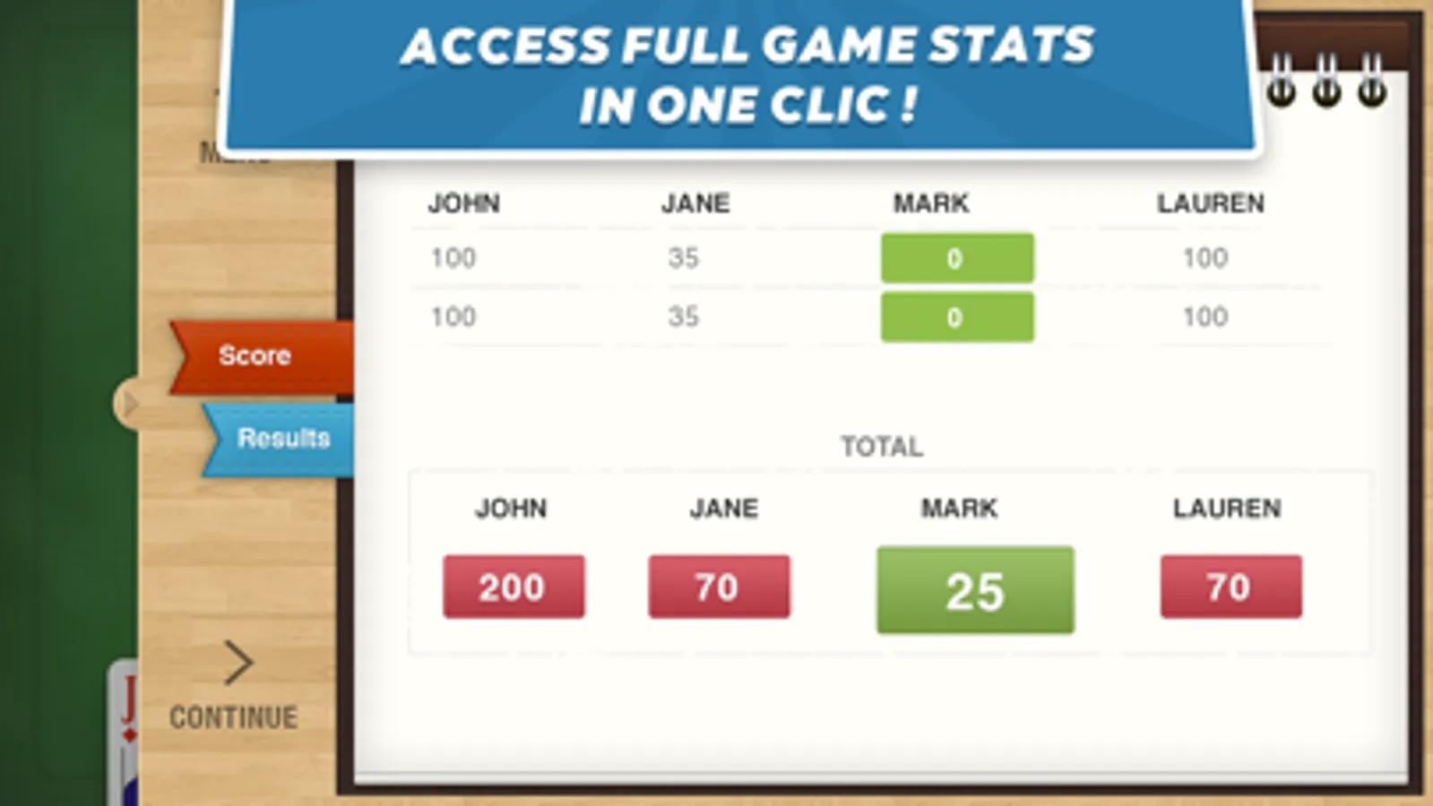 Numerous options are also available to modulate the rules of the game as you want them to be (gin rummy, jokers value, number of turns to reach before playing, number of points of the game...)