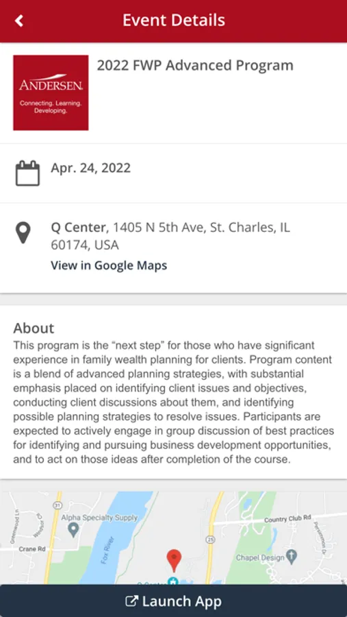 Andersen Events provide an opportunity for employees at all levels to participate in technical sessions, meet with firm wide committees and groups, and network with colleagues. The Andersen Events app provides event details at your fingertips: