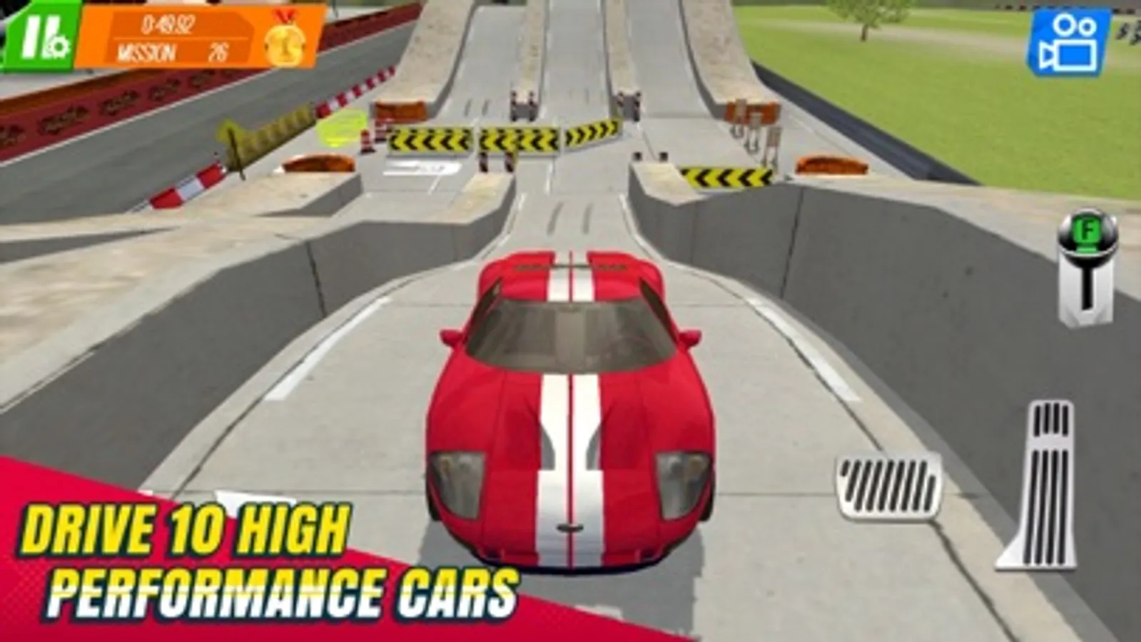 Every mission takes place in a carefully crafted course, which sole purpose is to test your driving skill and let you try out the best cars available. Discover and complete all of them.