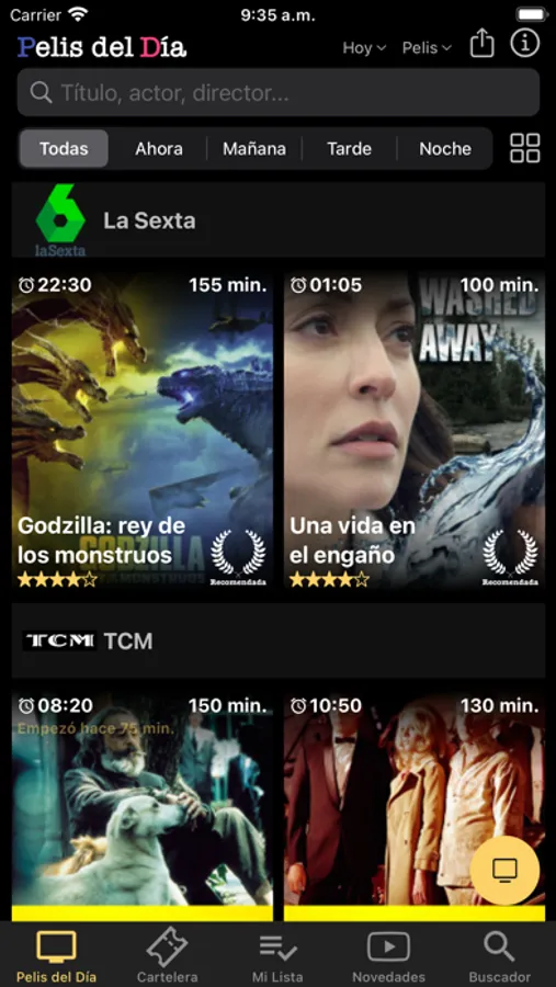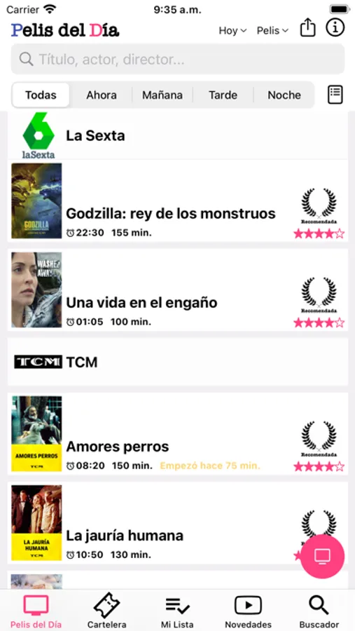 Pelis del Día es una aplicación que te permite comprobar la programación de películas que puedes ver hoy en la TV, en los cines y en los servicios de streaming más populares mediante una guía rápida y sencilla.