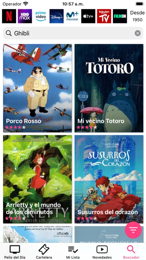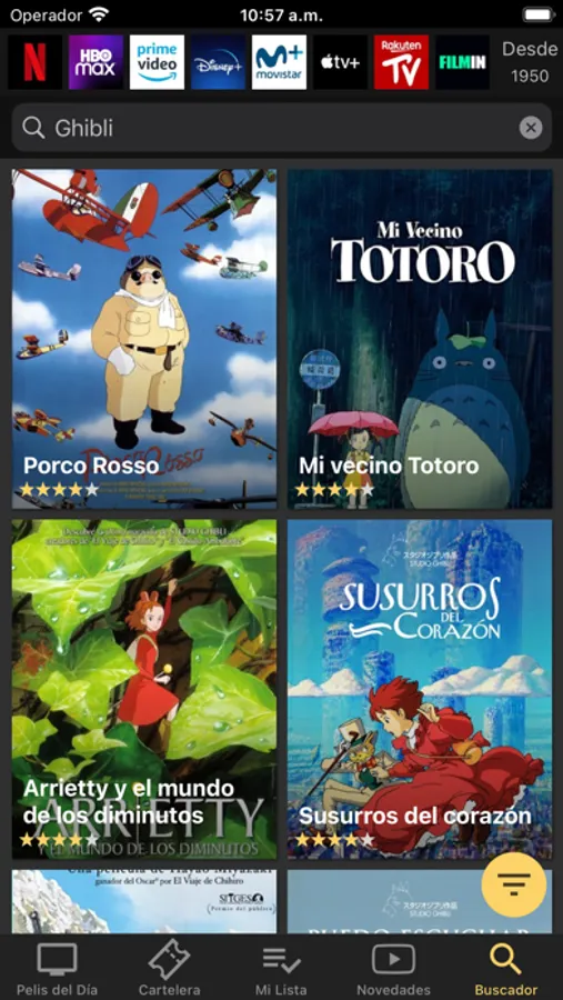 - Consulta las novedades de tus servicios de streaming favoritos como Netflix, HBO, Amazon Prime Video, Movistar, Filmin y Rakuten TV. Además, podrás buscar en su catálogo películas o series con filtros personalizados.