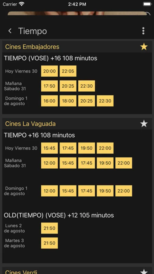 - Además de la programación, puedes encontrar una sinopsis de la película, valoración y ficha técnica.