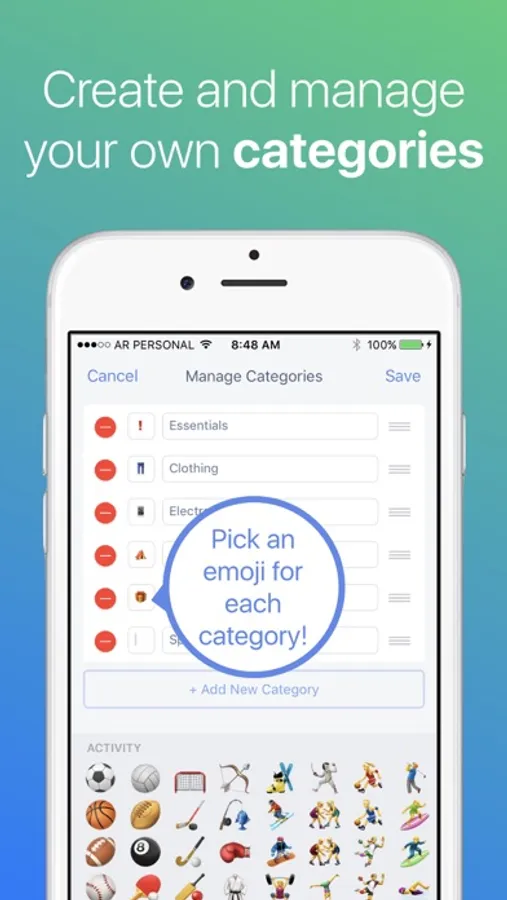 You will be able to create as many categories as you need, and you can pick an emoji to better differentiate them.