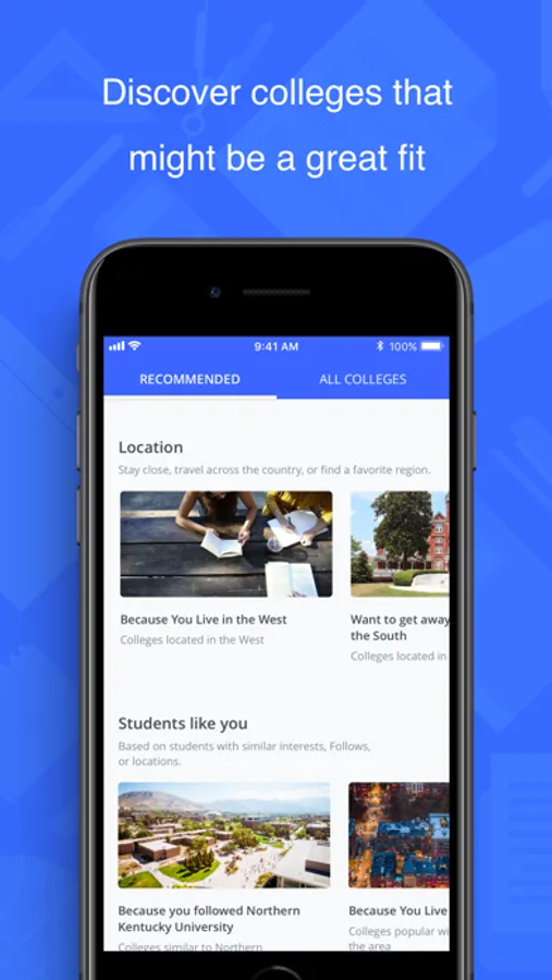 • Follow your favorite colleges and discover new colleges that could be a great fit for you