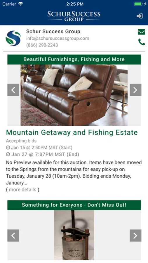 The Schur Success Group are industry leaders and your first choice in asset valuation, facilitating asset transactions, and connecting buying, selling and giving communities. This dynamic app allows you to (1) stay informed about our upcoming auctions; (2) watch items that interest you; (3) get notifications when you’ve been outbid; (4) bid in our auctions no matter where you have to be (or set and forget your maximum bid to let our platform automatically bid the lowest possible winning bid for you). This is the go-to-source for up-to-the-minute information on Schur Success Group.