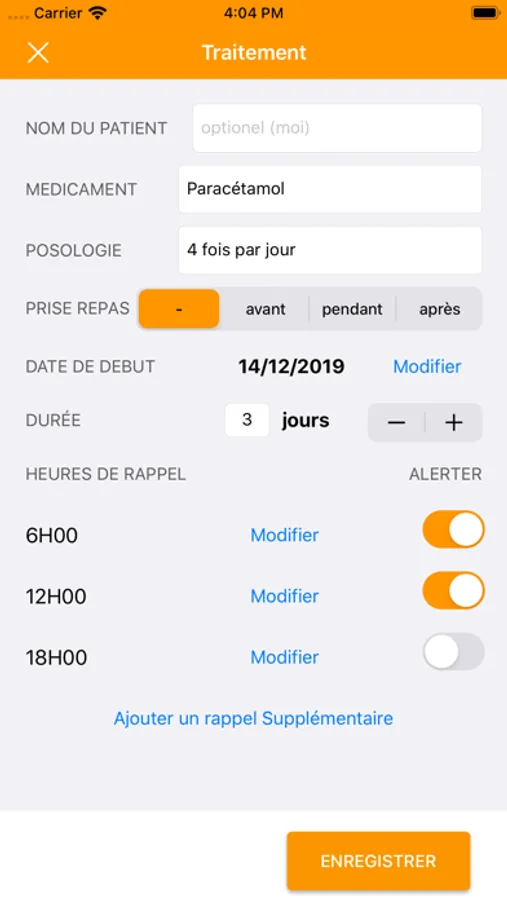 3. d'avoir des rappels réguliers de prise de médicaments aux heures que vous voulez.